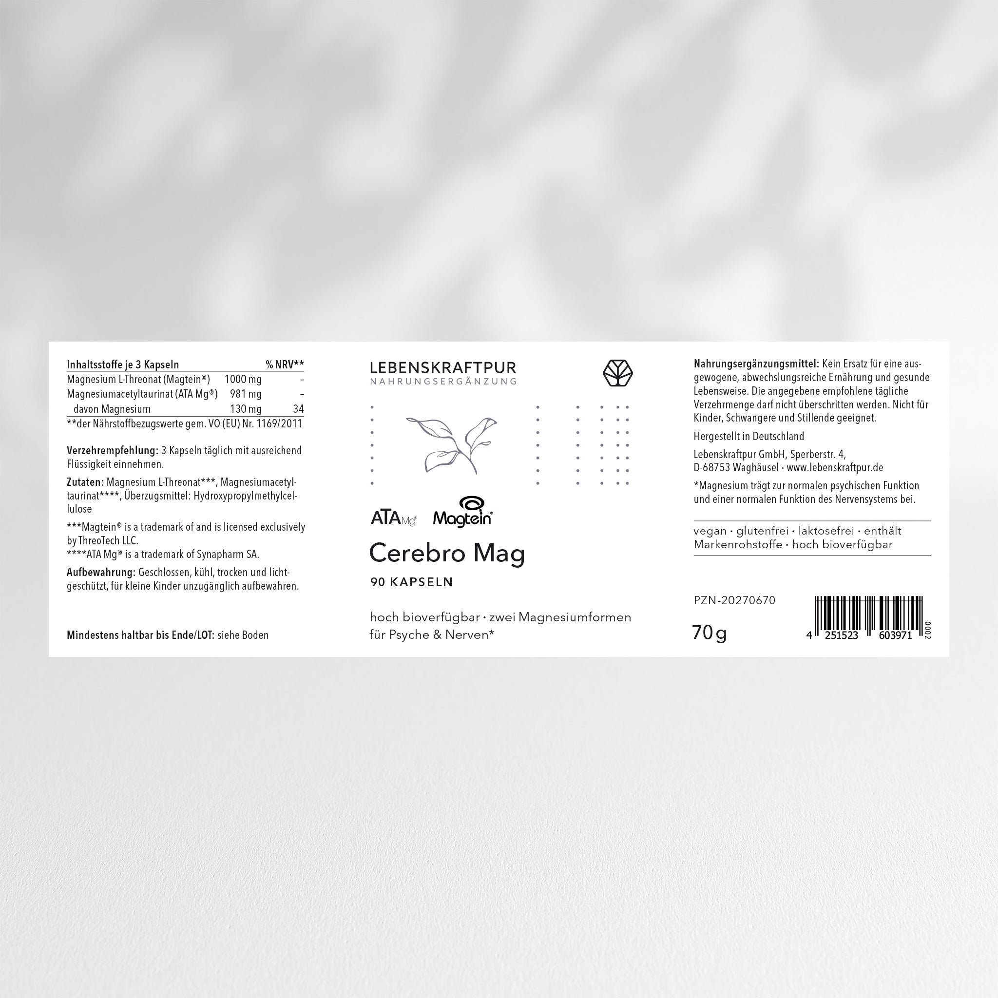 Markenrohstoffe Magtein® (Magnesium L-Threonat) und ATA Mg® (Magnesiumacetyltaurat)